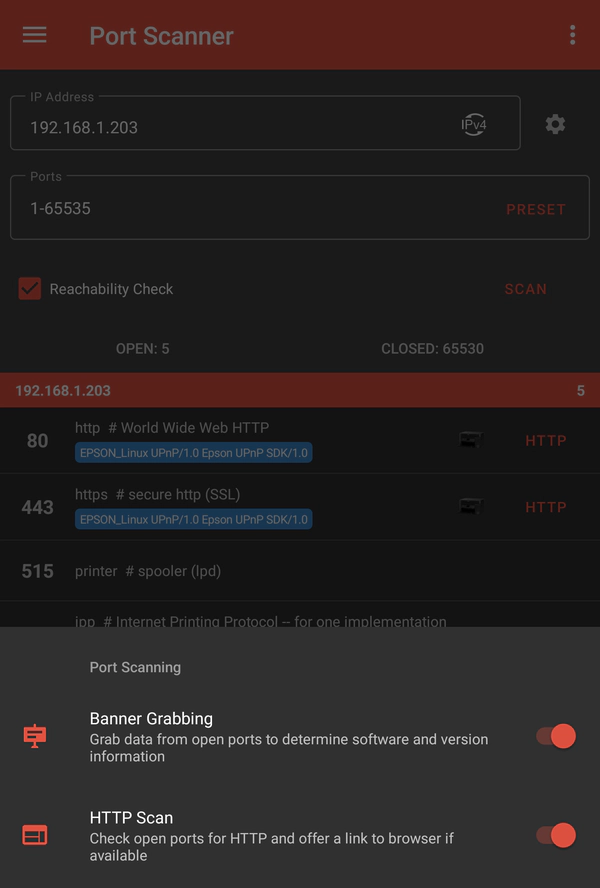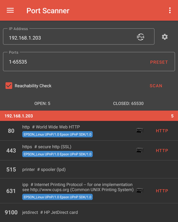 It began with a simple task: to identify open ports and services running on a local network featuring a network printer. So, I fired up PortDroid and initiated a port scan. PortDroid is typically used for network analysis, security checks, and troubleshooting. PortDroid can scan ranges of ports and identify which are open and what services they run.